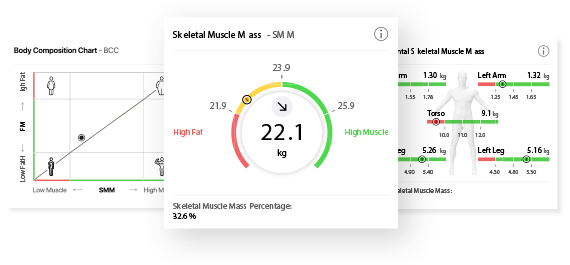 Exakt hier setzt das Seca mBCA 555 an. Drei Messvorgänge in unter einer Minute zeigen schnell alle wichtigen Werte. Die optimierte grafische Darstellung der Messergebnisse bietet unseren Trainerinnen und Trainern eine wertvolle Unterstützung bei Diagnose und Therapie. Sie erhalten in Sekunden ein vollständiges Bild der Körperzusammensetzung sowie die Möglichkeit einer detaillierten Analyse spezifischer Fragestellungen.
